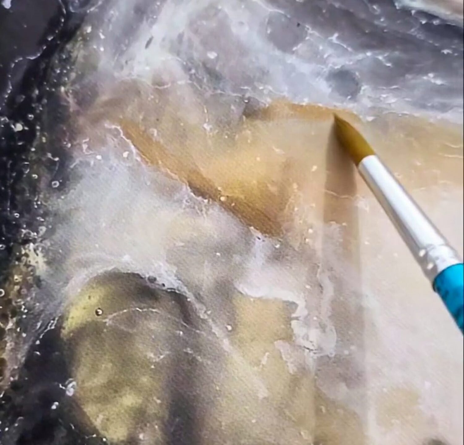 Para a mostra, que segue até 22 de setembro e marca a 49ª Semana de Portinari, Merielin escolheu uma tela que usa como técnica a mistura de elementos naturais, resina e pigmentos, captação fotográfica, impressão em canva e intervenção artística final com aquarela.