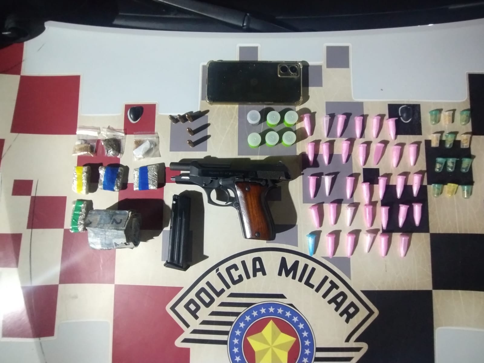 A moto, então, foi levada ao plantão policial. O homem foi indiciado em flagrante por porte de arma de fogo, tráfico de drogas e adulteração dos sinais de identificação de veículo. (Com informações da Polícia Militar e Secom de Sorocaba)