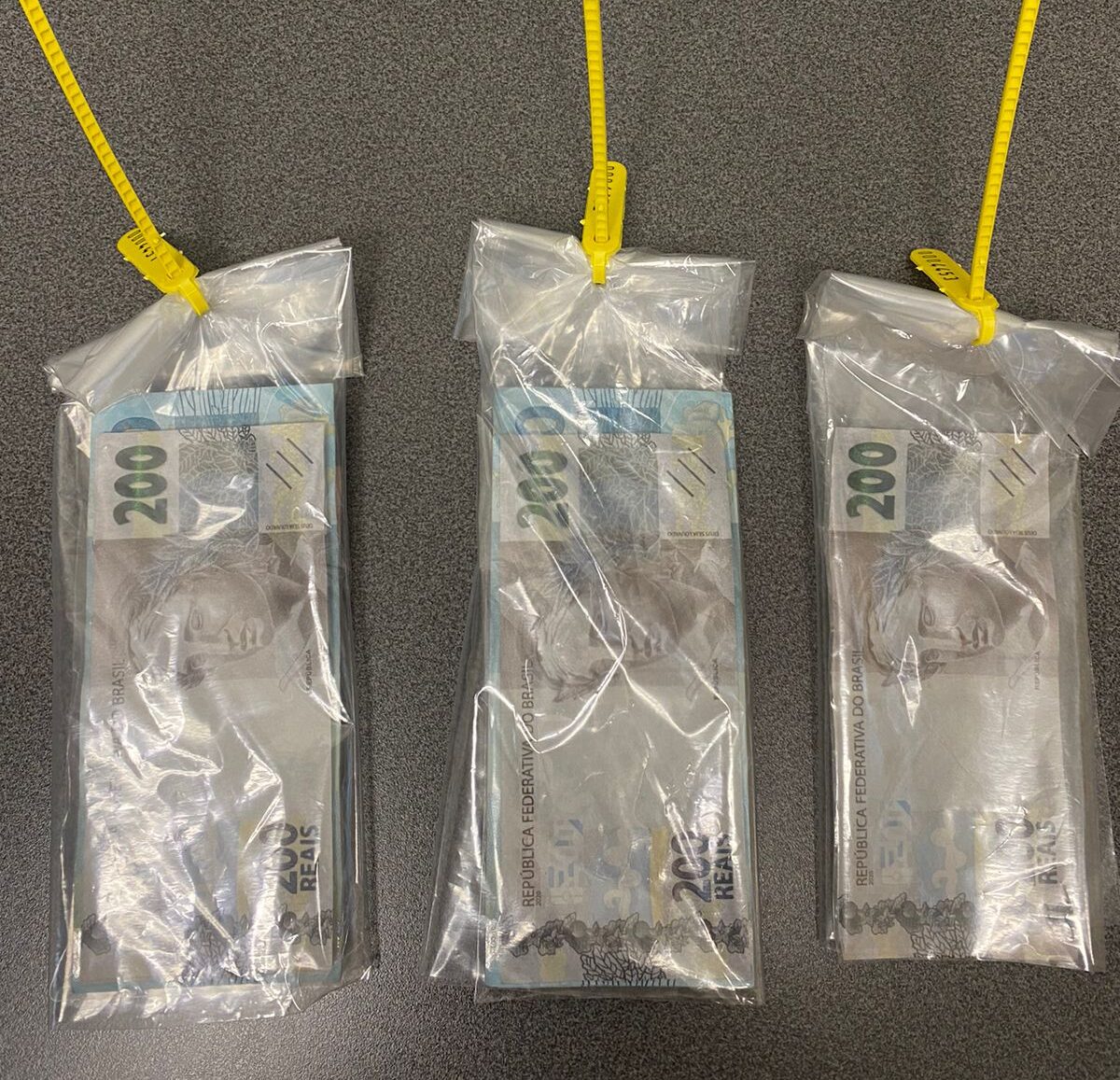 Durante a abordagem, foram apreendidas ao menos cinco cédulas de R$ 200,00 com evidências