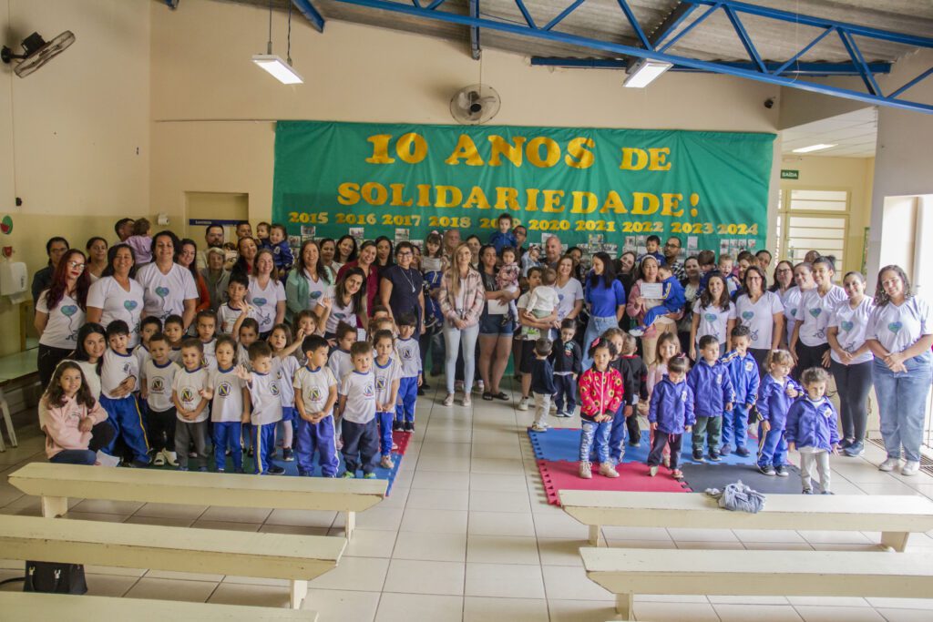 Neste ano, a instituição de ensino situada na Vila Nova arrecadou 280 garrafas PET de 2 litros cheias de lacres. Esse processo de recolhimento das peças de alumínio acontece graças a um trabalho constante de conscientização, que ultrapassa os limites físicos da creche, feito junto aos pais dos alunos e da comunidade.