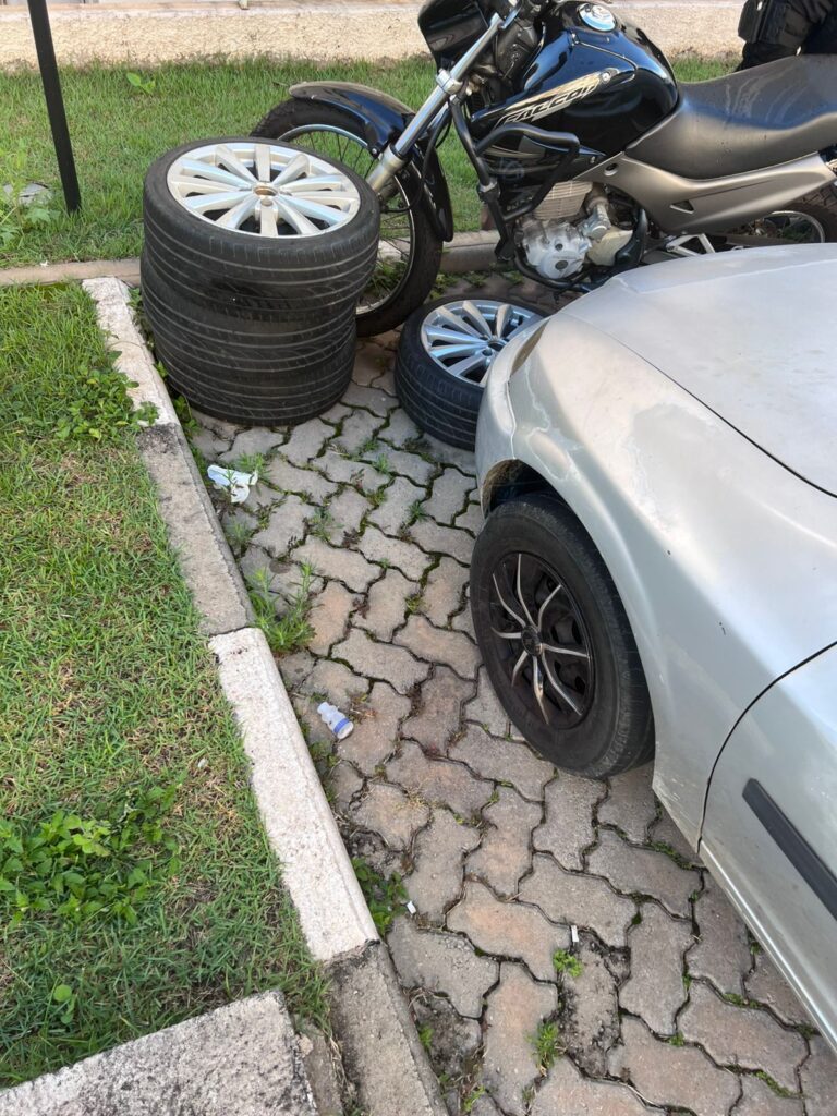 A descoberta mais surpreendente ocorreu na garagem do imóvel, onde quatro rodas de aro 17, com pneus, foram encontradas escondidas sob uma lona. Esses itens foram posteriormente identificados por uma das vítimas como pertences roubados de sua residência.