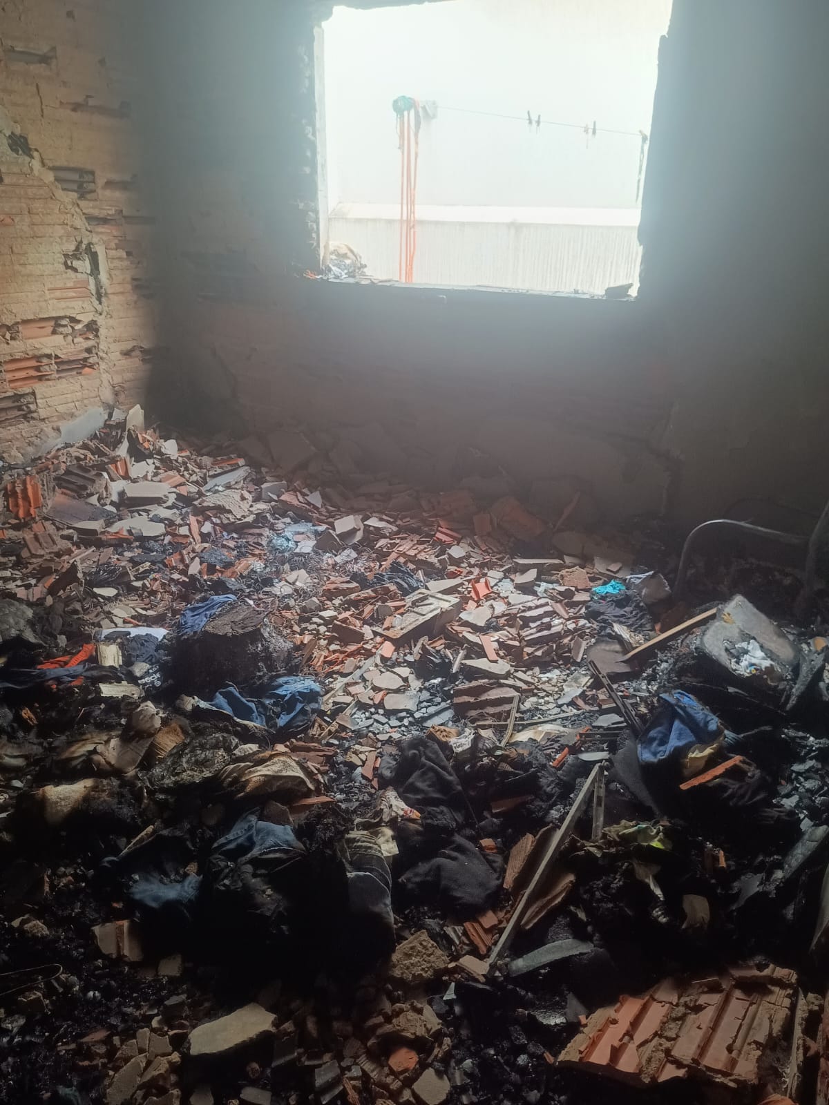 De acordo com o relato de Michele, ao retornar à residência, ela se deparou com o imóvel em chamas. O fogo destruiu o quarto, o corredor, a fiação elétrica e o acabamento da casa. Além disso, o gesso da sala e da cozinha desabou..