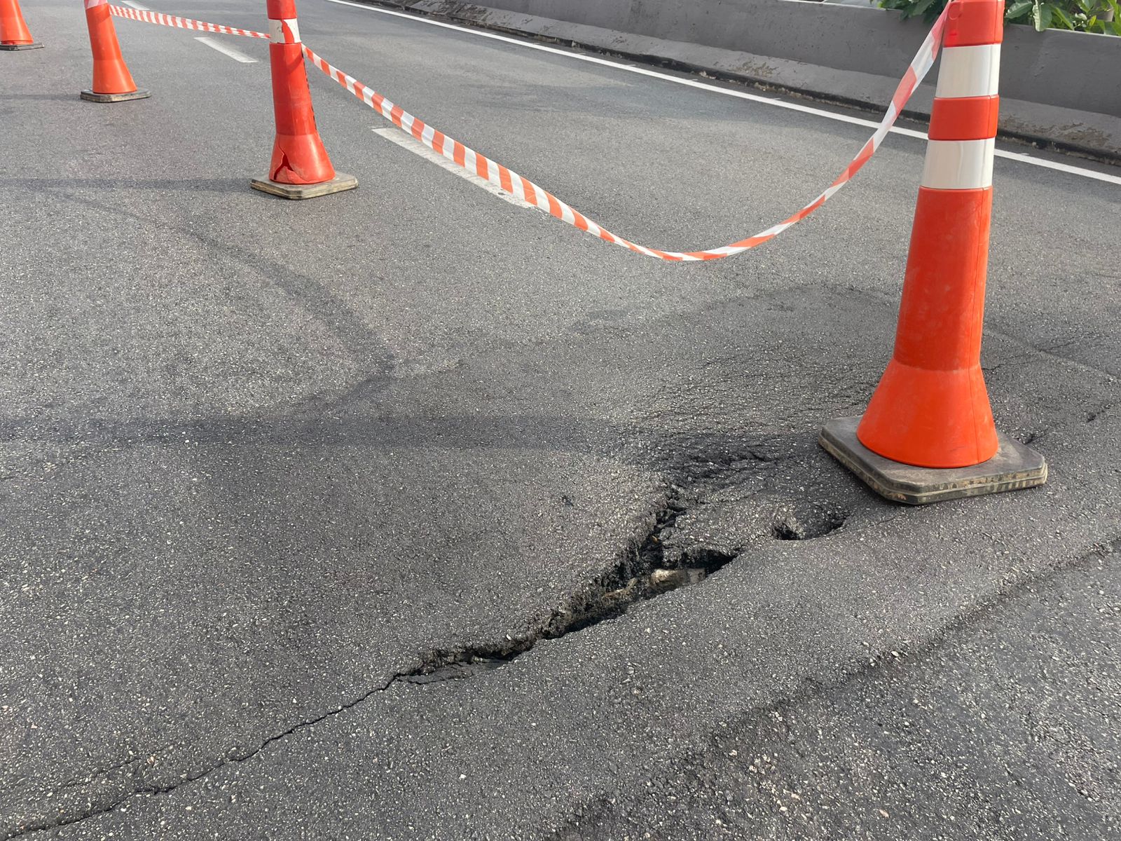 A fissura, que atravessa uma parte do viaduto, é visível na estrutura. Como alerta, a Prefeitura de Sorocaba colocou cones, próximo ao local para alertar motoristas.
