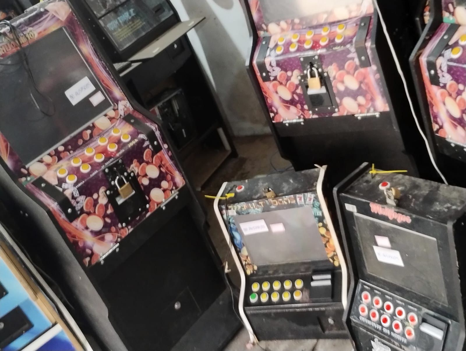 Além das máquinas, materiais relacionados à prática ilícita também foram apreendidos.