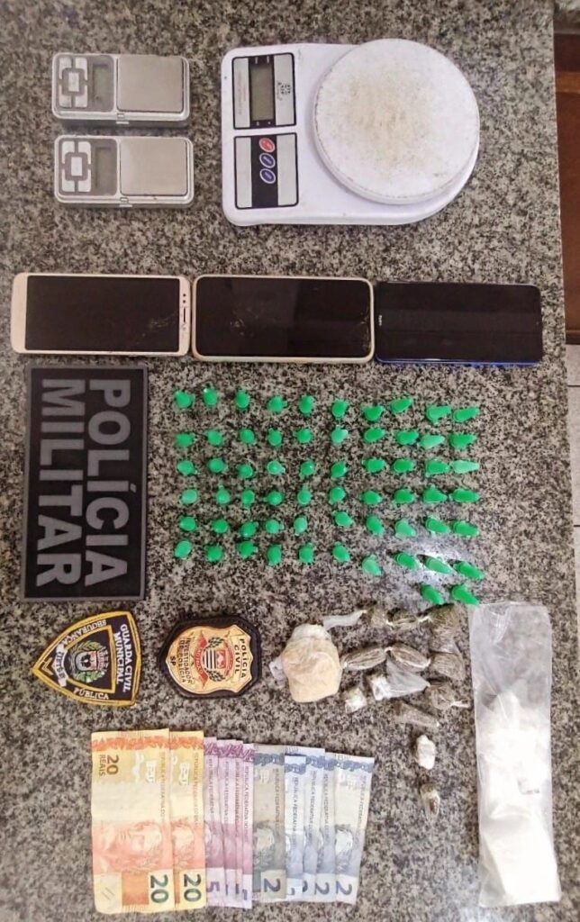 Dentro da casa, foram localizadas porções de maconha e crack, balanças de precisão, material para embalar drogas, três aparelhos celulares e dinheiro. Também foi encontrado um documento de identidade pertencente a uma terceira pessoa, que possuía antecedentes criminais, o que levanta a suspeita de seu envolvimento no esquema.