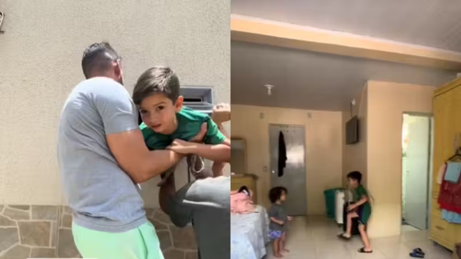 O vídeo foi compartilhado pela mãe de Pedro, Perla de Jesus. Ela contou que a pequena Isis acabou virando a chave sem querer e se trancou dentro de casa. Por sorte, o super-herói Pedrinho estava por perto!