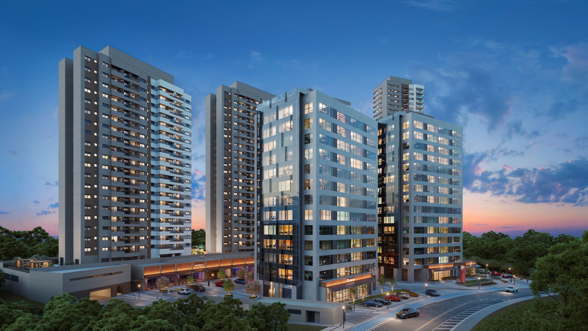 “Os complexos multiusos são componentes importantes para a construção de cidades sustentáveis. A presença deles permite a consolidação de centralidades urbanas e essa desejável integração entre moradia, trabalho e lazer pode ser promovida a partir da indução e estímulo do planejamento urbano local. Nessas comunidades autossuficientes, onde é possível trabalhar, descer para almoçar e morar logo ao lado, com acesso fácil a comércios variados, tudo pode ser feito a pé. Isso gera economia de energia, reduz o uso de veículos, minimiza a poluição e torna possível fazer qualquer atividade apenas caminhando, usufruindo o espaço arborizado com cafés e áreas de convivência para aproveitar o momento”, explica Paulo Kawahara, sócio-fundador do renomado escritório Jaime Lerner Arquitetos Associados.