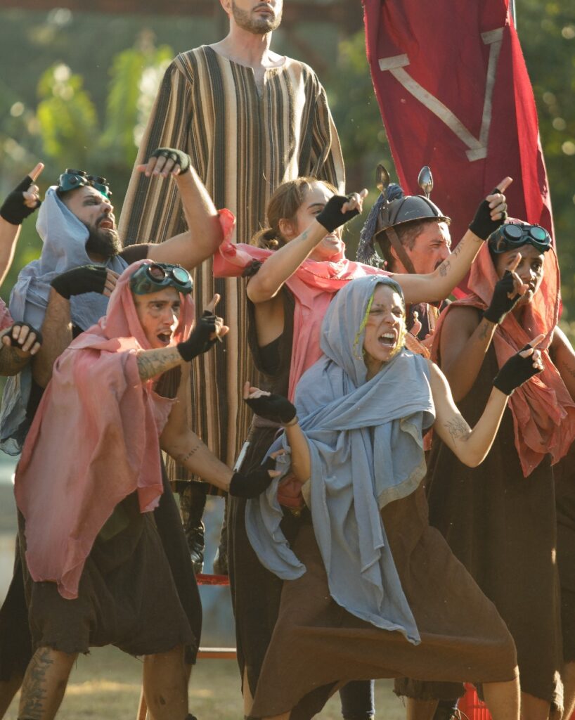 Encenação épica livremente inspirada no original “Peças e Pessoas”, do dramaturgo Luís Alberto de Abreu, a peça tem como tema central a disputa entre dois reinos pela última fonte de água, por meio de um antigo jogo de guerra: o xadrez.