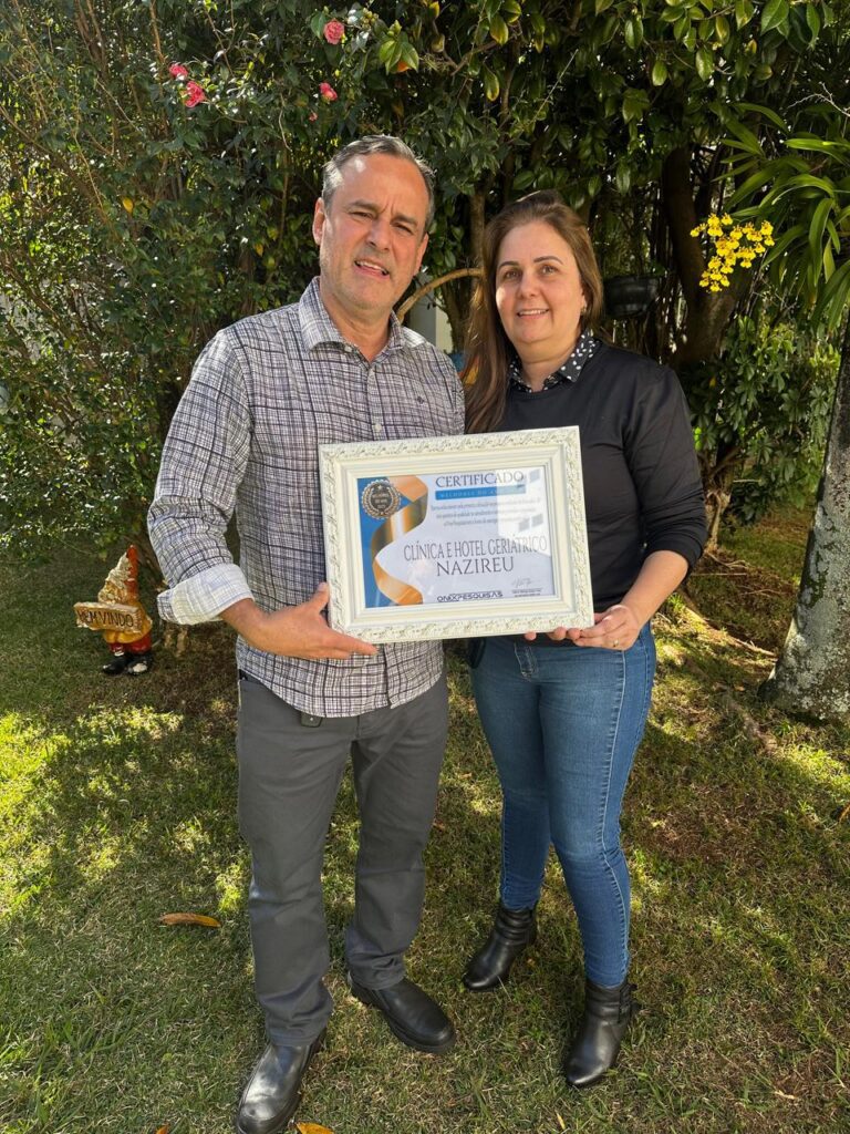 Empresa familiar há mais de 18 anos no mercado, sob o comando do casal Elcio e Valéria e apoio de equipe especializada, o Hotel Geriátrico Nazireu, recebeu o Certificado Melhores do Ano 2025, em reconhecimento pela primeira colocação em pesquisa realizada em Sorocaba, nos quesitos de qualidade no atendimento e serviços prestados à população.