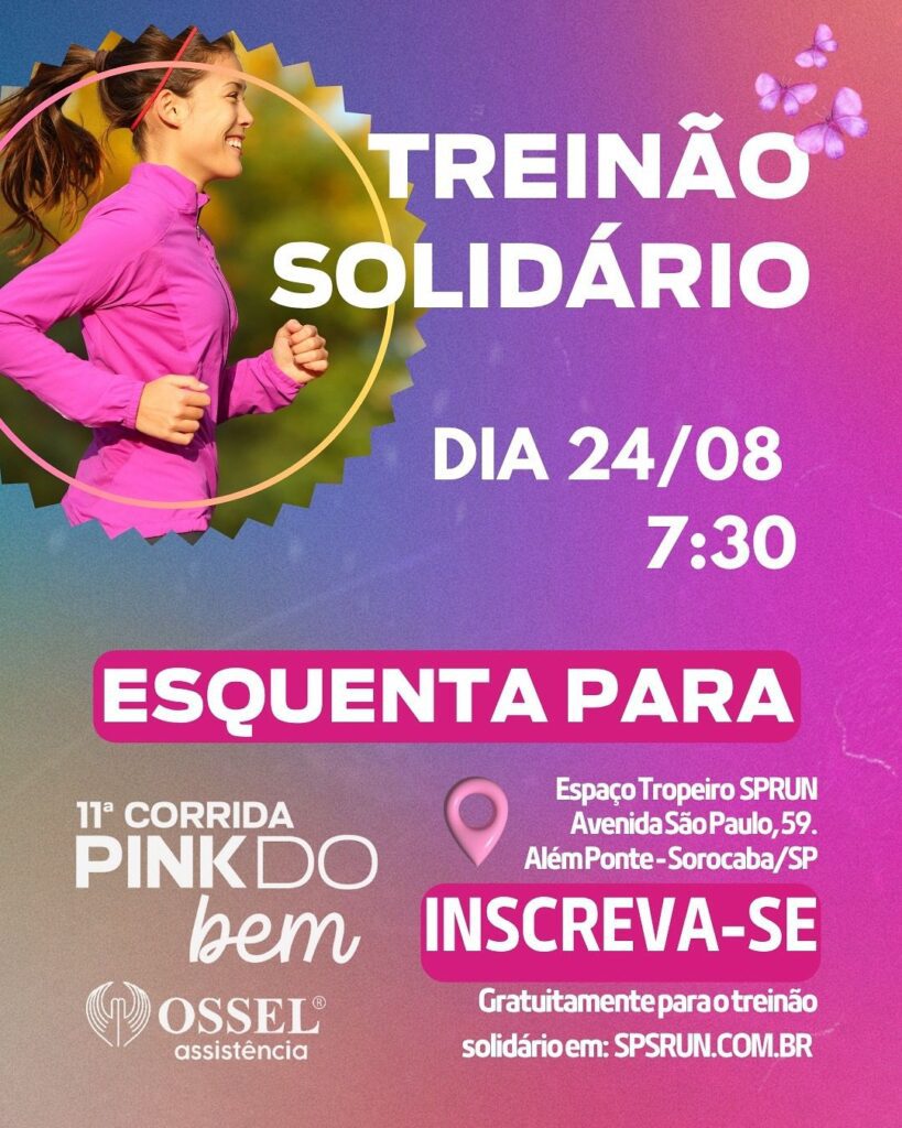 Pelo décimo primeiro ano seguinte a edição da CORRIDA PINK DO BEM – OSSEL ASSISTÊNCIA, é realizada no mês de outubro para divulgar a importância da prevenção do câncer de mama e arrecadar renda para exames de biópsias das mulheres que estão aguardando na fila do SUS. A corrida será realizada no dia 26/10 no Parque das Águas, Sorocaba.
