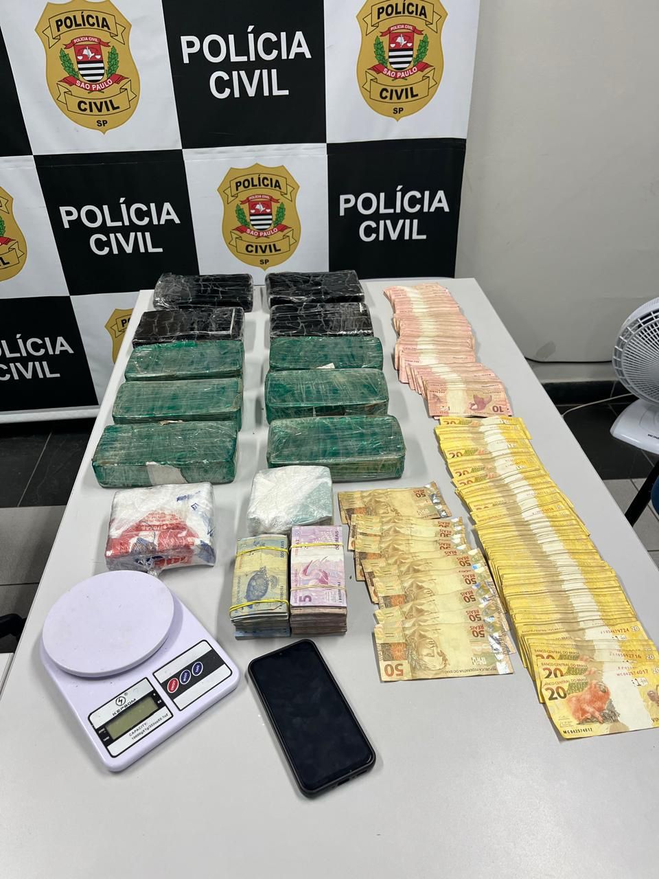 Ao visualizarem o veículo estacionando, os agentes se aproximaram e efetuaram a abordagem. Ao ser indagado se havia algo de ilegal no carro, o homem informou que estava apenas com uma bolsa cheia de dinheiro. Assim que foi informado do Mandado de Busca e Apreensão, o investigado admitiu que havia entorpecentes guardados em sua casa. Ele acompanhou as equipes até sua residência, onde os policiais civis encontraram, dentro do guarda-roupas de um dos quartos, uma mala com doze tijolos de cocaína.