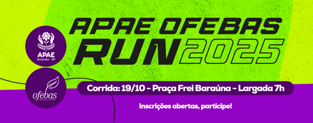 A APAE OFEBAS RUN 2025 ocorrerá no dia 19 de outubro, em Sorocaba, com largada na Praça Frei Baraúna às 07h30. O evento é organizado pela Associação de Atletismo Santi Pegoretti (AASP – Sorocaba) e tem como objetivo promover a inclusão social por meio do esporte. 100% da renda com a corrida será destinada a APAE Sorocaba.