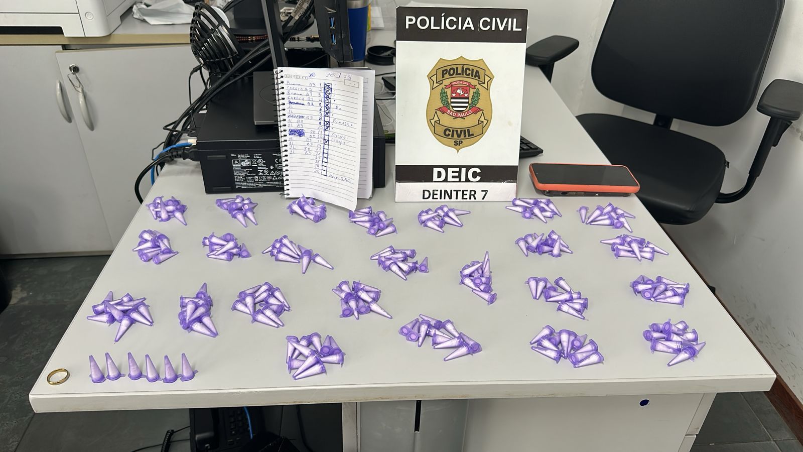 Com o avanço das investigações, a equipe de Homicídios da Deic, apoiada pelo Grupo de Operações Especiais (GOE), cumpriu um mandado de prisão contra o suspeito. Durante a ação, foram encontradas no imóvel do investigado uma quantidade significativa de entorpecentes e diversas anotações relacionadas à contabilidade do comércio ilegal.