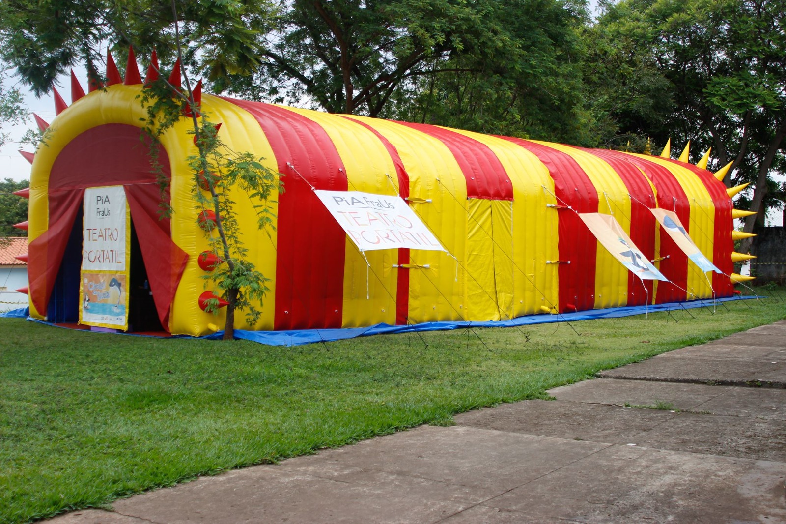 Serão quatro sessões do espetáculo “Bichos Vermelhos”, às 9h, 10h, 14h e 15h, apresentando, gratuitamente, um teatro bem fora do comum. Com uma estrutura grande e inflável nas cores vermelha e amarela, chamando a atenção por onde passa, o Teatro Portátil é fruto da Pia Fraus, que de forma moderna monta e desmonta rapidamente.