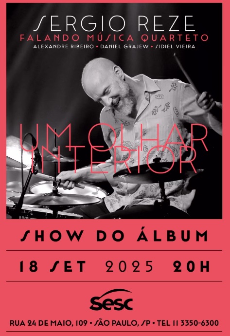 Na próxima quinta-feira, dia 18, Sergio Reze Falando Música Quarteto apresentam o show do álbum UM OLHAR INTERIOR no Sesc 24 de maio, na capital paulista.