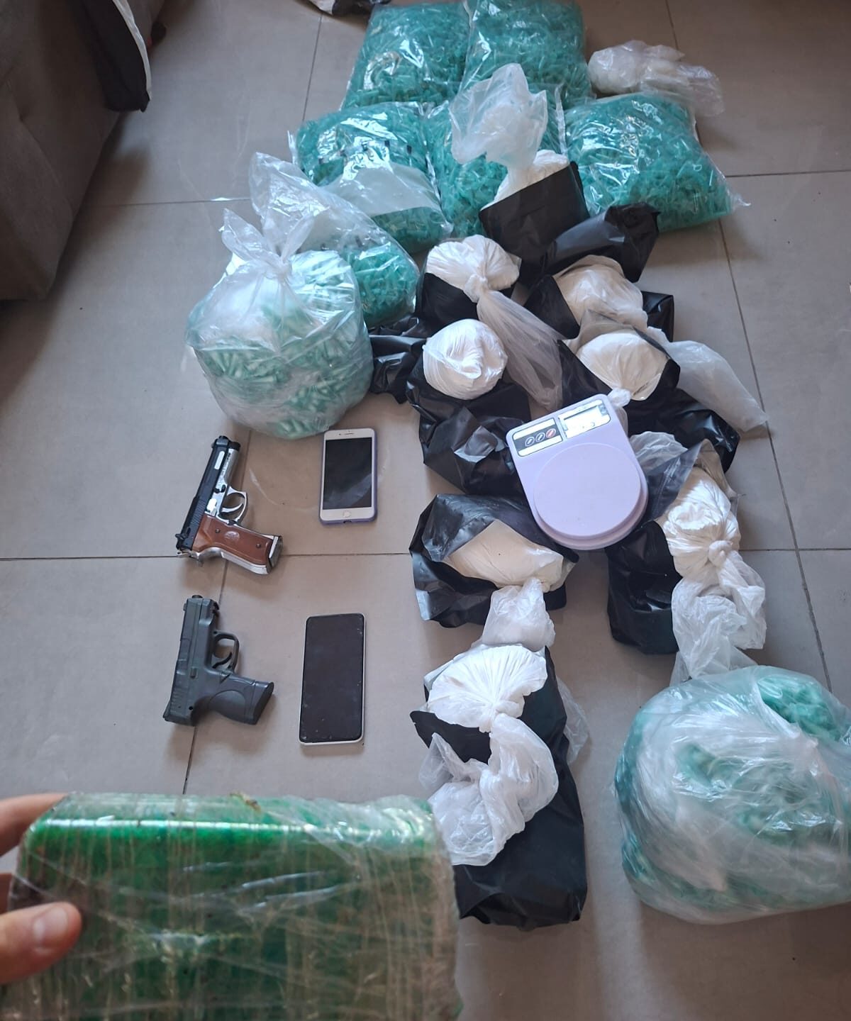 Na casa, três indivíduos tentaram fugir, mas um deles foi detido junto de sua esposa. Durante a averiguação, foram encontrados aproximadamente 5 kg de maconha, parte já fracionada para venda e outra parte em fase de preparo para comercialização.