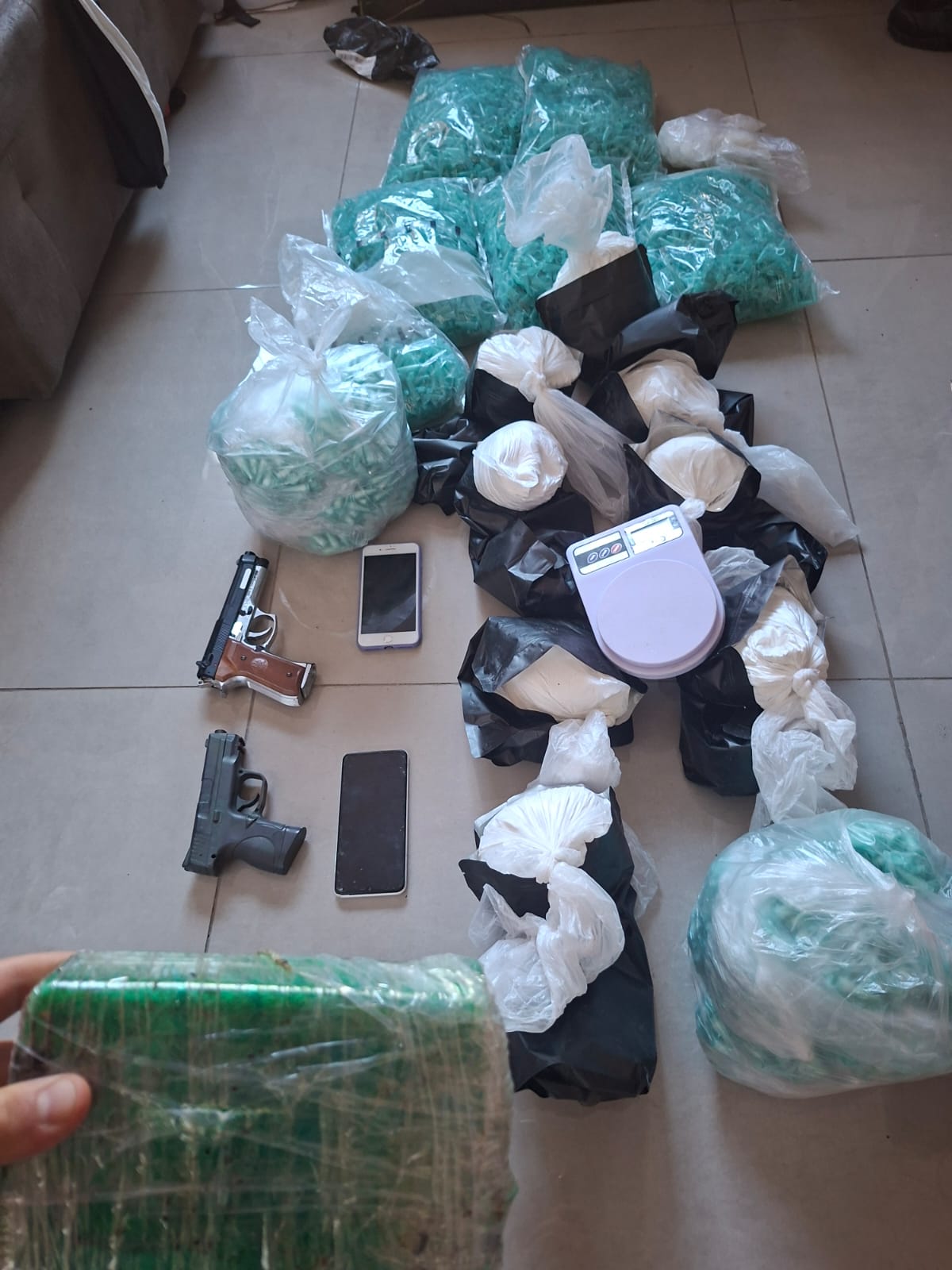 Na casa, três indivíduos tentaram fugir, mas um deles foi detido junto de sua esposa. Durante a averiguação, foram encontrados aproximadamente 5 kg de maconha, parte já fracionada para venda e outra parte em fase de preparo para comercialização.