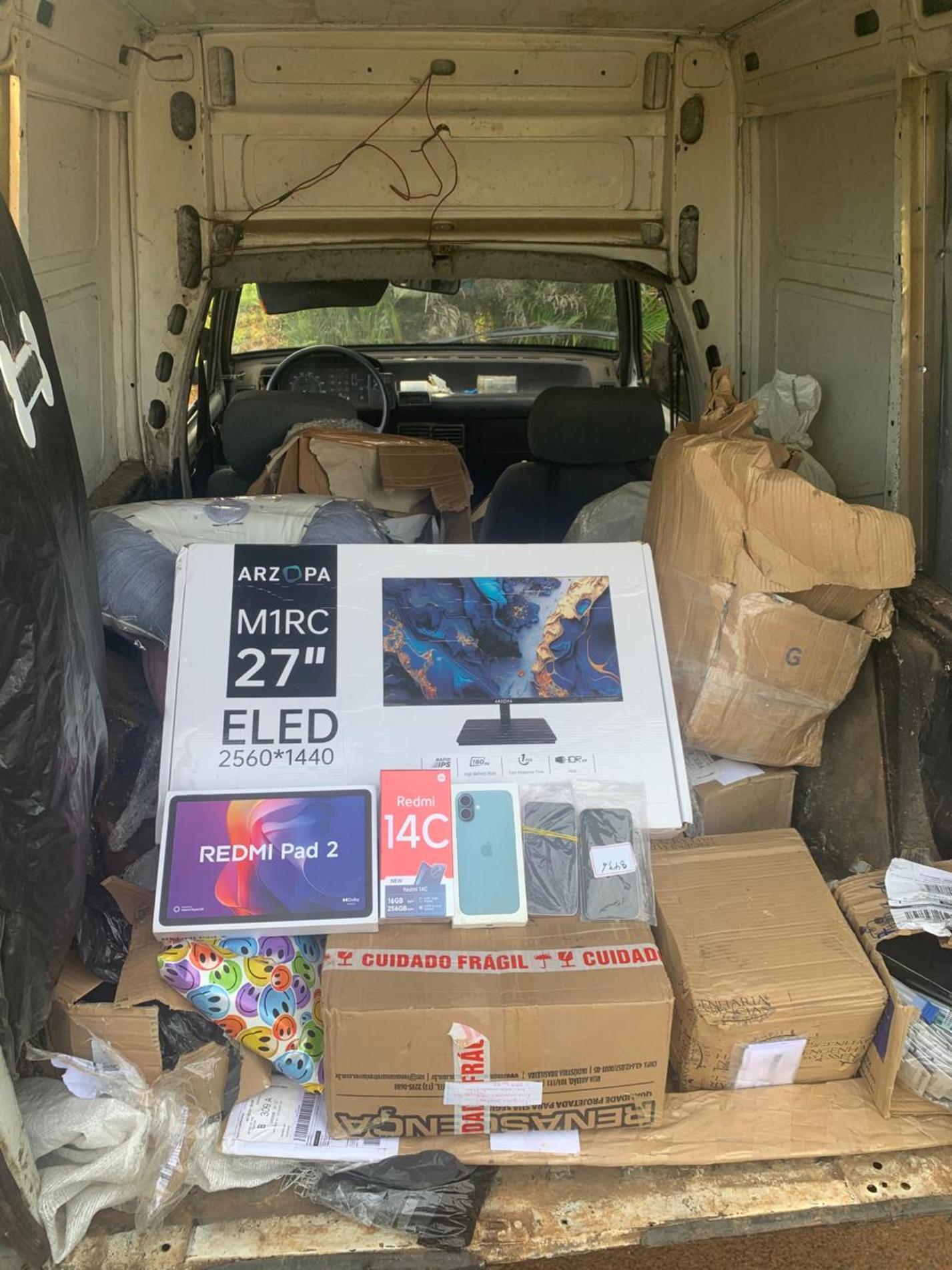 De acordo com o 2° tenente Igor Henrique da Silva Santos, da Polícia Militar, a equipe foi informada sobre o assalto por volta das 14h. Os suspeitos anunciaram o roubo e afirmaram estar armados, mas nenhuma arma foi encontrada durante a prisão. A carga levada incluía iPhones, iPads, televisores e equipamentos odontológicos lacrados, avaliados em cerca de R$ 50 mil.