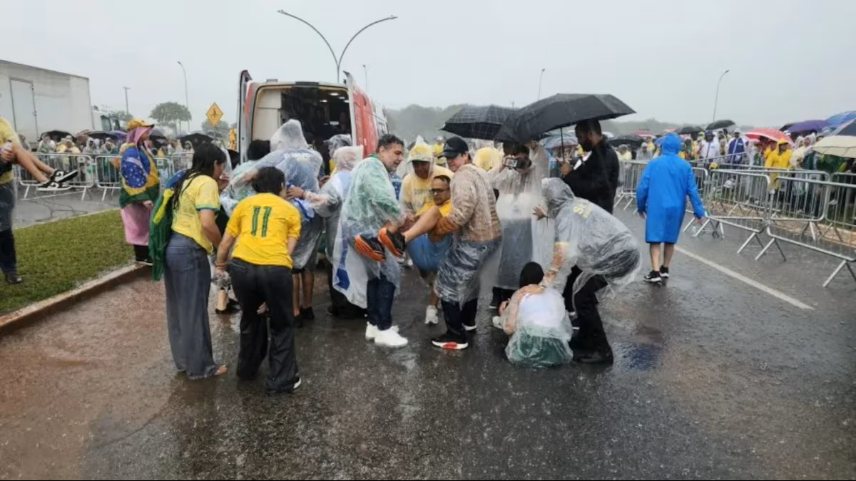 Raio atinge manifestação liderada por Nikolas Ferreira em Brasília e deixa feridos