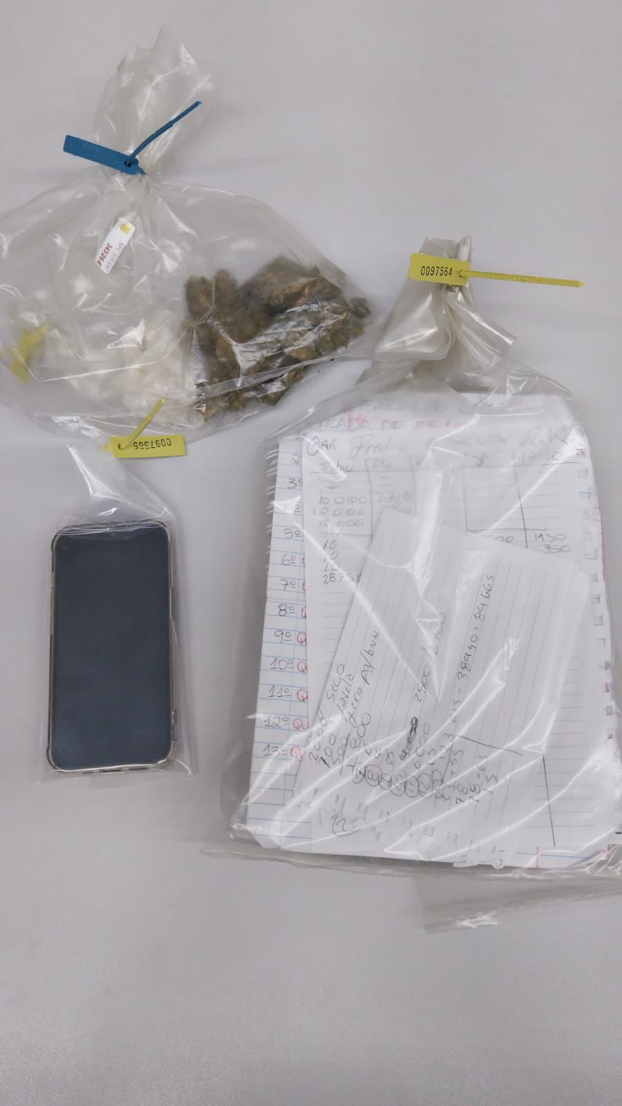 Durante a revista pessoal, nada de ilícito foi encontrado. No entanto, ao ser questionado, o homem confirmou que havia uma quantidade de maconha dentro da residência. Em buscas no imóvel, os policiais civis localizaram e apreenderam o entorpecente, além de um caderno contendo anotações relacionadas à contabilidade do comércio ilegal e um aparelho celular.