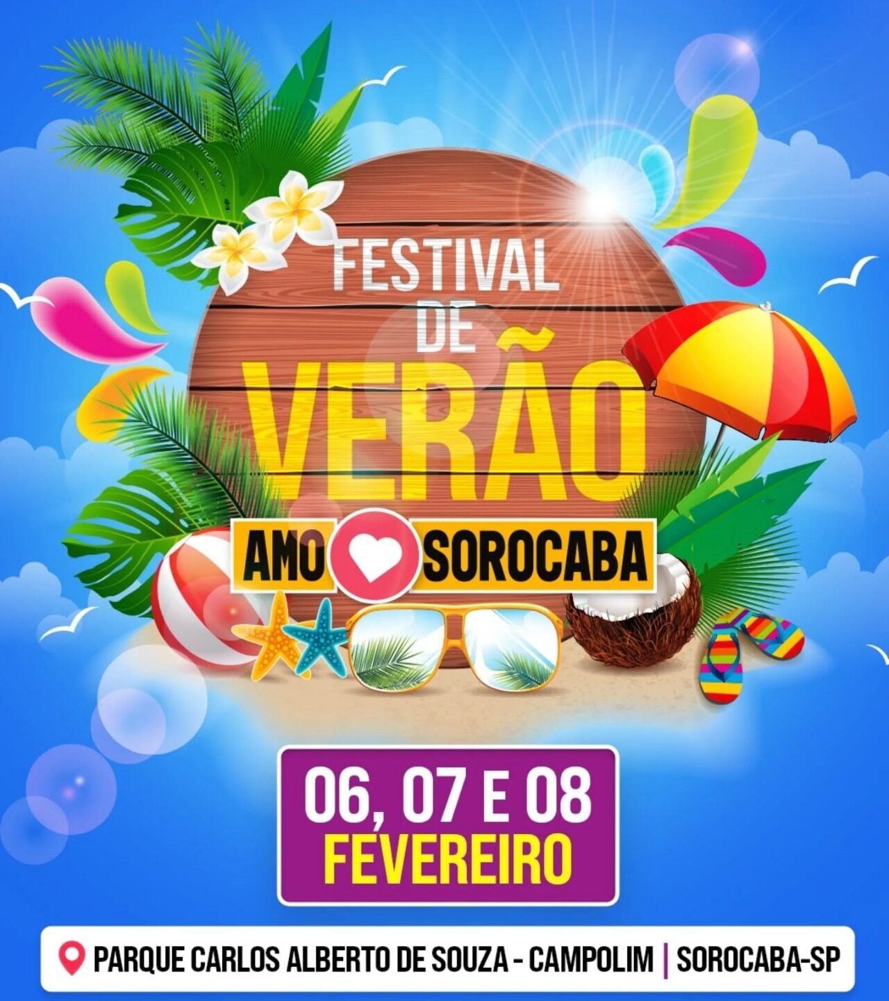 Acontece, de sexta a domingo (6 a 8), o “Festival de Verão – Amo Sorocaba”, no Parque “Carlos Alberto de Souza”, no Parque Campolim. Com entrada gratuita, o evento contará com uma grande variedade gastronômica, além de shows, apresentações culturais e feira com empreendedores criativos.