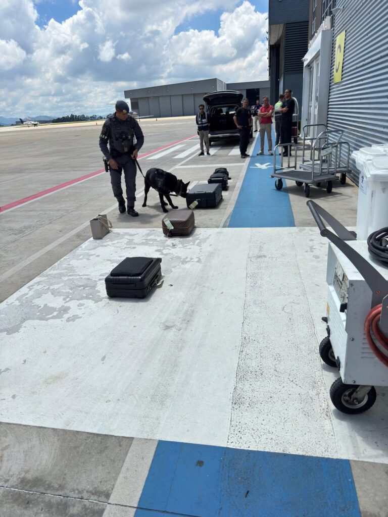 A operação contou com o trabalho de Policiais Federais e de policiais militares do Batalhão de Ações Especiais de Polícia (BAEP), incluindo equipes com cães de detecção, utilizados na inspeção de aeronaves, hangares e demais dependências aeroportuárias.