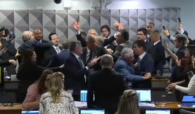 A confusão entre parlamentares começou após a votação simbólica proposta pelo senador Carlos Vianna (Podemos-MG), presidente da CPMI. Durante a confusão, congressistas chegaram a se empurrar, e a sessão teve de ser suspensa.