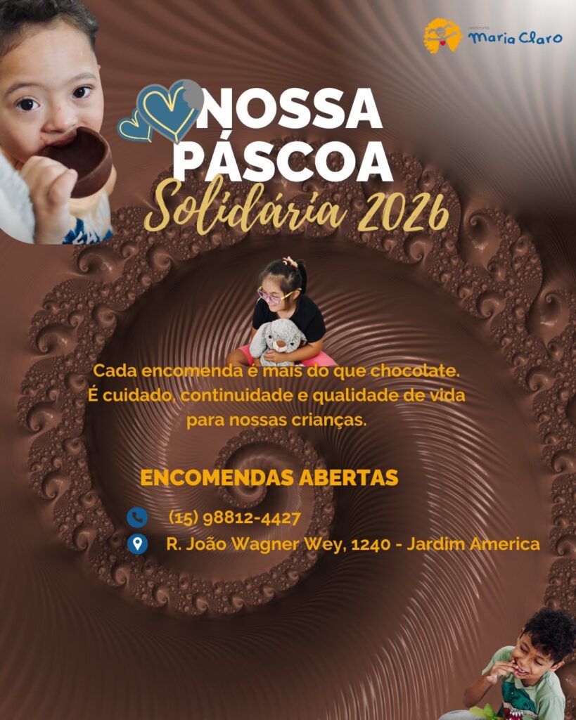 O Instituto Maria Claro lançou a campanha “Páscoa Solidária 2026”, com o objetivo de arrecadar recursos para manter os atendimentos oferecidos a crianças assistidas pela instituição. Esse é o quarto que o instituto realiza a ação, onde toda a renda arrecadada com a venda de ovos e chocolates artesanais será revertida para garantir a continuidade dos serviços.