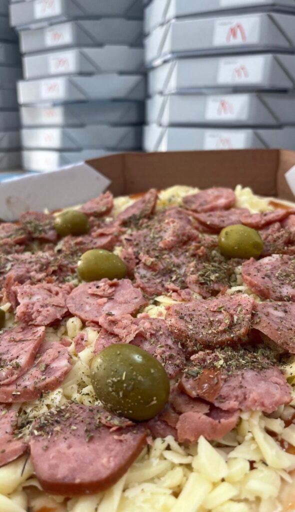 Sabores: calabresa com muçarela, muçarela e presunto com muçarela