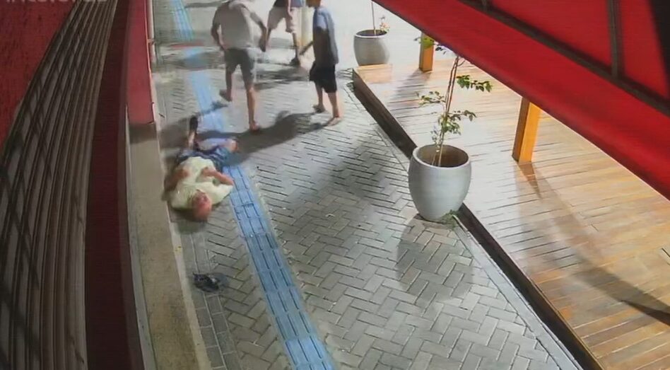 As imagens registradas por uma câmera de segurança, mostram que os jovens se aproximam e o idoso recua, até que começam as agressões. O idoso se afasta, andando de costas, quando cai e bate a cabeça. Neste momento os agressores, que ainda não foram identificados, fogem. Uma mulher e um homem com uma criança de colo correm em direção ao idoso caído para prestar ajuda.