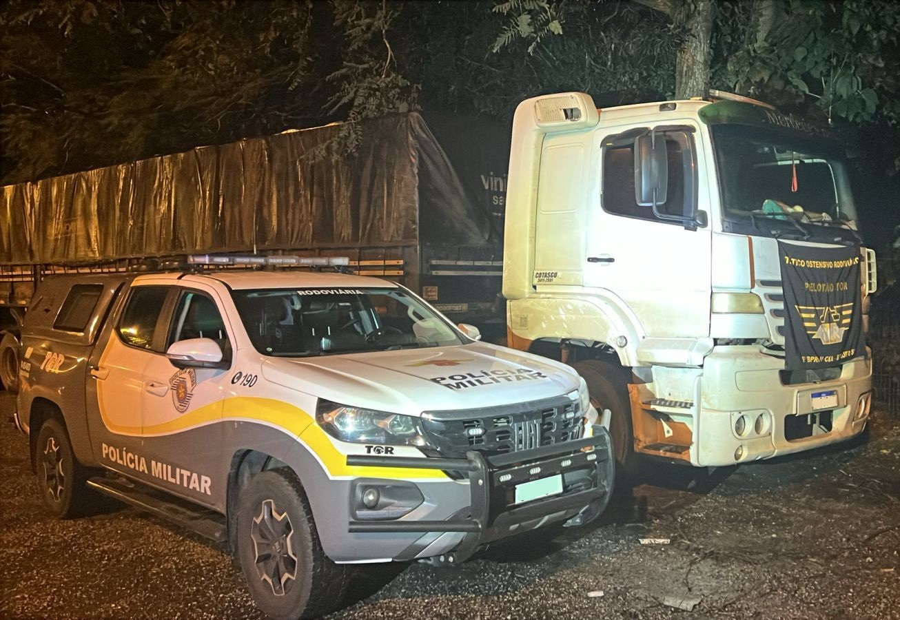 A equipe abordou um caminhão com queixa de roubo e prendeu o criminoso que conduzia o veículo.