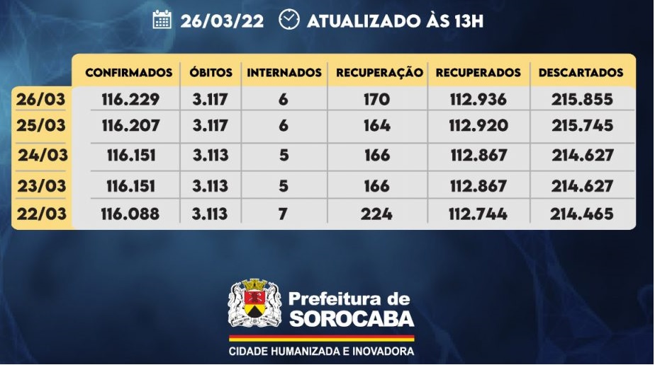 A Prefeitura de Sorocaba, por meio da Secretaria da Saúde (SES), registrou mais 22 casos confirmados da Covid-19, 16 recuperados e nenhum óbito notificado neste sábado (26). Do total de confirmados, seis estão internados (dois em UTI) e o total de pessoas em recuperação (isolamento domiciliar) é 170. Com isso, o número de recuperados da […]