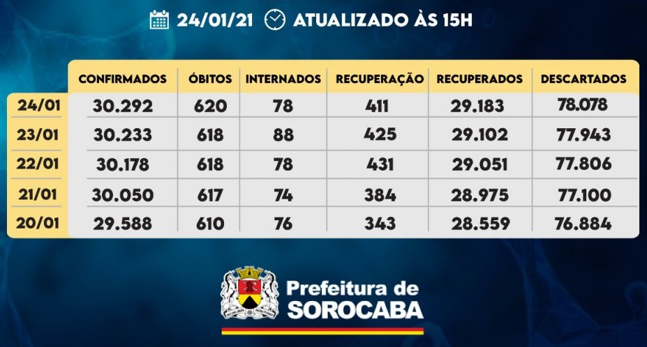 A Prefeitura de Sorocaba, por meio da Secretaria da Saúde, recebeu neste domingo (24), a notificação de mais 59 casos confirmados da COVID-19, 81 recuperados e dois óbitos, um homem de 59 e outro de 72 anos, ambos sem comorbidades. Do total de confirmados, 78 estão internados (33 em UTI) e o total de pessoas […]