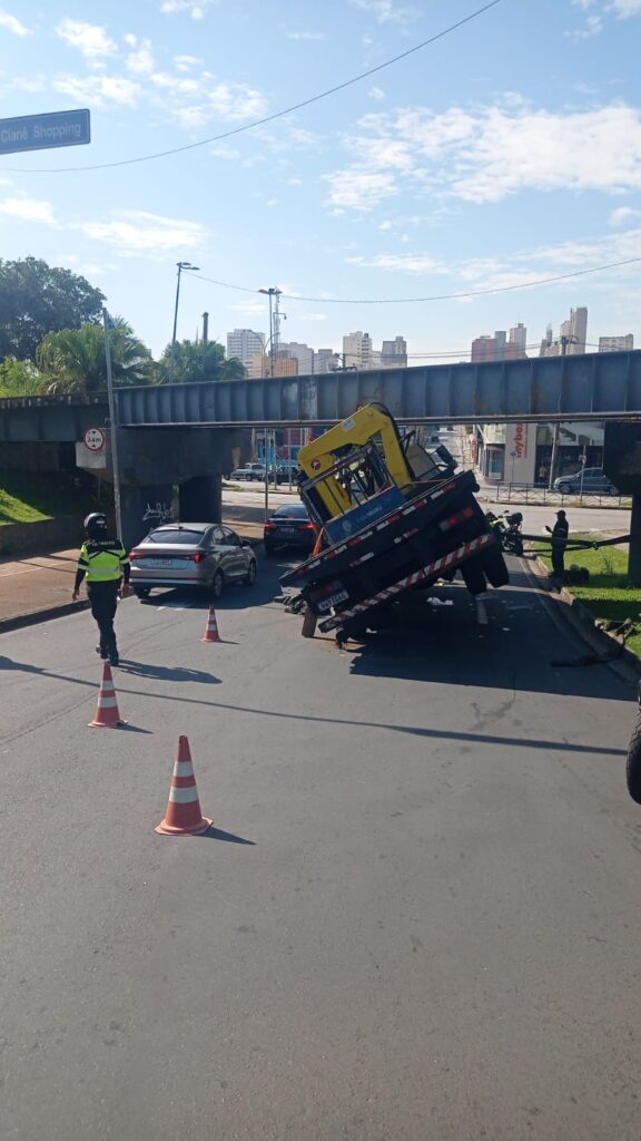 Um caminhão ficou preso na manhã desta terça-feira no pontilhão da Rua Mascarenhas Camelo, no acesso à Praça da Bandeira, na região central de Sorocaba. Segundo informações apuradas no local, o motorista seguia pela Rua Mascarenhas Camelo e tentou acessar a Rua Padre Luiz quando o veículo, que excedia o limite de altura permitido, acabou […]