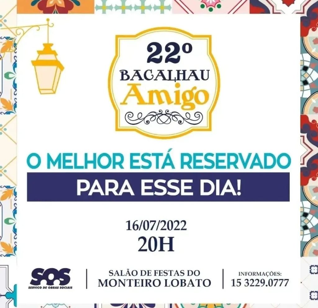 O tradicional jantar dançante Bacalhau Amigo, realizado pelo SOS Sorocaba, está de volta neste ano de 2022 no salão de festas do Monteiro Lobato. Com mais de 600 convites já vendidos, a expectativa do presidente do SOS, Rubens Cury Basso,, é que o evento seja um sucesso. Ouça entrevista completa!