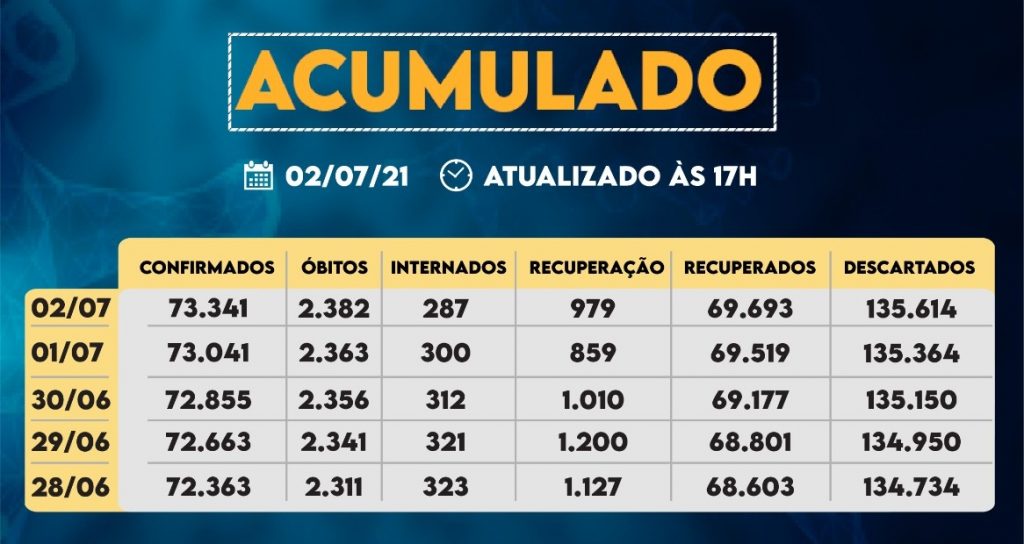 Sorocaba recebeu a notificação de mais 300 casos confirmados da Covid-19, 174 recuperados e 19 óbitos, estes ocorridos desde o dia 23 de junho, mas informados pelos hospitais à Vigilância Epidemiológica e computados apenas no dia de hoje (2 de julho). Do total de confirmados, 287 estão internados (147 em UTI) e o total de […]