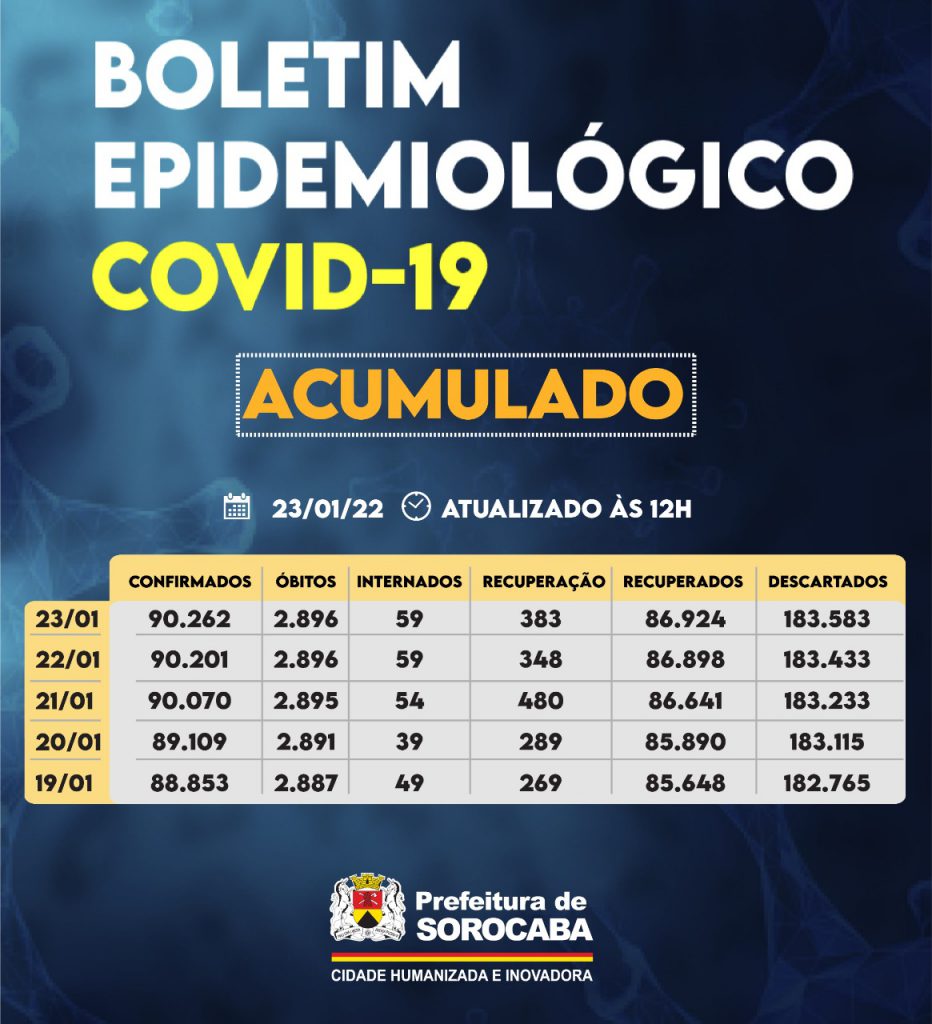 A Prefeitura de Sorocaba, por meio da Secretaria da Saúde (SES), registrou aumento do número de recuperados da Covid-19 neste domingo (23), chegando ao total de 86.924. Já, os casos confirmados com a doença passaram de 90.201 para 90.262 na cidade. Os óbitos confirmados permaneceram em 2.896. A taxa de letalidade no município é de […]
