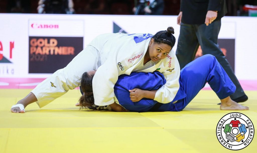 A judoca Beatriz Souza, na categoria peso pesado feminino (+78kg), faturou o título do Grand Slam de Abu Dhabi. Começando a caminhada diretamente nas semifinais, contra Adiyasuren Amarsaikhan, da Mongólia, Beatriz aplicou um ippon com apenas 14 segundos de luta. Confira detalhes com o repórter Nilson Duarte. Foto Divulgação