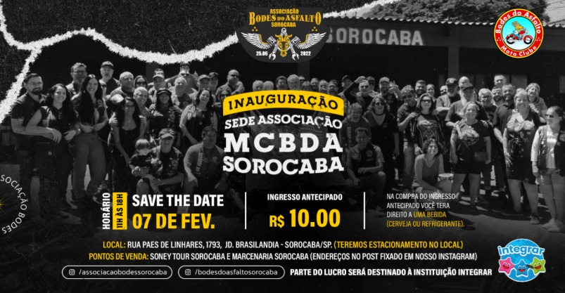 A Associação Bodes do Asfalto Sorocaba inaugura, no próximo sábado, dia 7, sua sede própria, marcando um momento significativo na trajetória do motoclub na cidade. A jornalista Cibelle Freitas entrevistou o presidente da Associação, Nélio de Lucia, que trouxe mais detalhes.