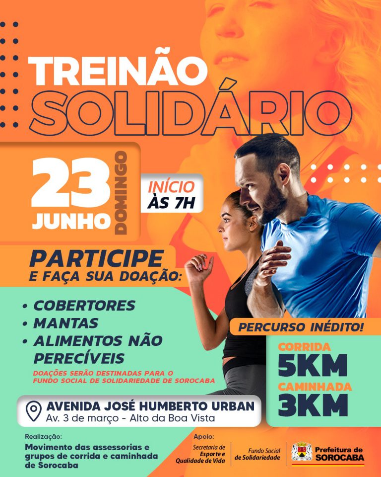 A Prefeitura de Sorocaba, por meio do Fundo Social de Solidariedade e da Secretaria de Esporte e Qualidade de Vida (Sequav), apoia o Treinão Solidário com caminhada de 3km e corrida de 5km, que é realizado pelo Movimento das assessorias e grupos de corrida e caminhada de Sorocaba e acontece neste domingo (23), às 7h. […]