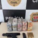 Um homem foi preso por tráfico de drogas e posse ilegal de arma de fogo na noite desta quinta-feira (30), no bairro Altos de Ipanema, em Sorocaba. Com ele foram apreendidos 628 pinos de cocaína, 51 porções de maconha, 28 pinos de crack e 19 porções de k9, 2 celulares, uma balança, embalagens, 5 munições do […]
