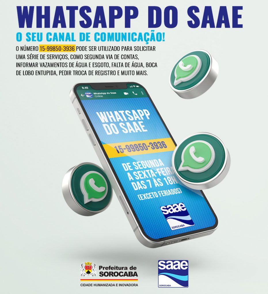 O Serviço Autônomo de Água e Esgoto de Sorocaba (Saae) ampliou a quantidade de serviços que podem ser solicitados via atendimento eletrônico pelo WhatsApp (15) 99850-3936. Por meio dessa ferramenta, a autarquia agora disponibiliza grande parte dos serviços que já estão ao alcance do munícipe nos postos de atendimento presencial e também em sua agência […]