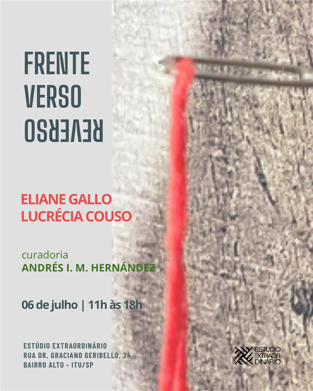 A exposição “FRENTE. VERSO. REVERSO.”, estará em cartaz a partir do próximo domingo, dia 6, às 11h, no Estúdio Extraordinário, em Itu. A mostra conta com obras de arte de Eliane Gallo e Lucrécia Couso, com participação de Raquel Fayad na abertura. As artistas exploram o individual e o coletivo a partir de ferramentas plurais alojadas […]